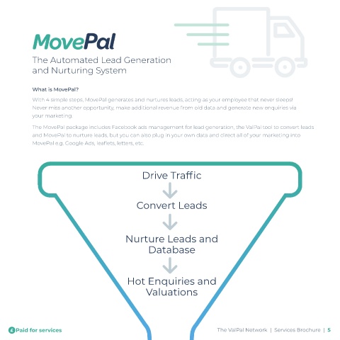 The MovePal package includes Facebook ads management for lead generation, the ValPal tool to convert leads